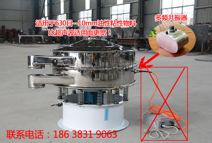 易結(jié)球,有粘性60目以細(xì)物料現(xiàn)在多采用超聲波清網(wǎng)。由于超聲波為高頻低振幅(固定頻率),部分物料存在堵網(wǎng)、卡孔、結(jié)球無(wú)法破球等多種問題,無(wú)法使物料徹底篩分。比60目粗的物料超聲波無(wú)法使用(60目篩網(wǎng)絲徑為0.125mm,篩網(wǎng)漲緊后超聲波的振幅無(wú)法通過振環(huán)使篩網(wǎng)產(chǎn)生共振)。