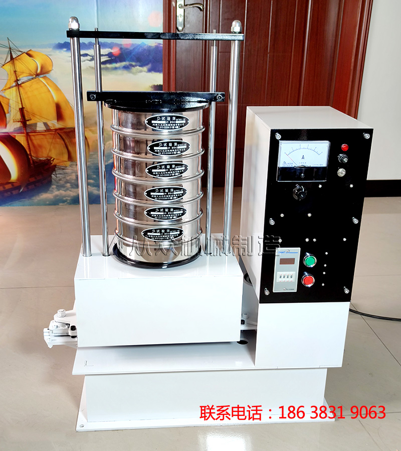 磁懸浮式振動(dòng)篩通電后電磁裝置形成磁場(chǎng),起振裝置懸浮在磁場(chǎng)中間,形成了上下高頻振動(dòng),再通過(guò)底部托盤傳導(dǎo)到安放在托盤上的一套從粗到細(xì)排列的篩具上,使得實(shí)驗(yàn)篩、分樣篩中的物料上下、左右往返振動(dòng)及運(yùn)動(dòng),使每層實(shí)驗(yàn)篩、分樣篩內(nèi)只留下相同粒度的物料,達(dá)到了不同粒度的分離。