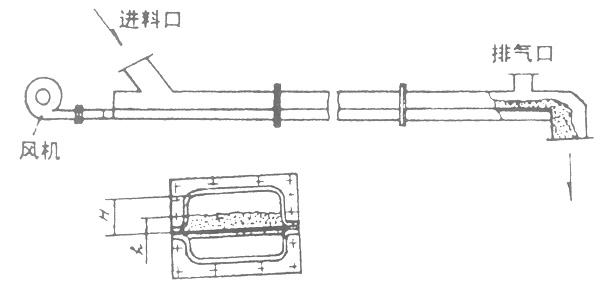 風(fēng)送斜槽是一種用于輸送干燥粉狀物料的氣力輸送設(shè)備又稱空氣輸送設(shè)備,由數(shù)個(gè)鑄鋼板鑄成的槽子連接而成,并沿其輸送方向布置成一定的斜度,槽子的上下殼體中間夾有氣層,物料隨氣體流動(dòng)輸送。
