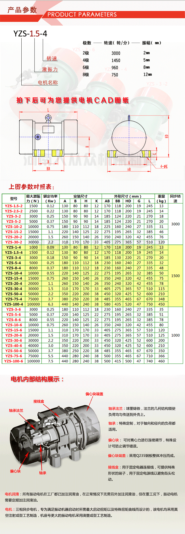 | 特點 | 性能穩(wěn)定,激振力強,耐用 |