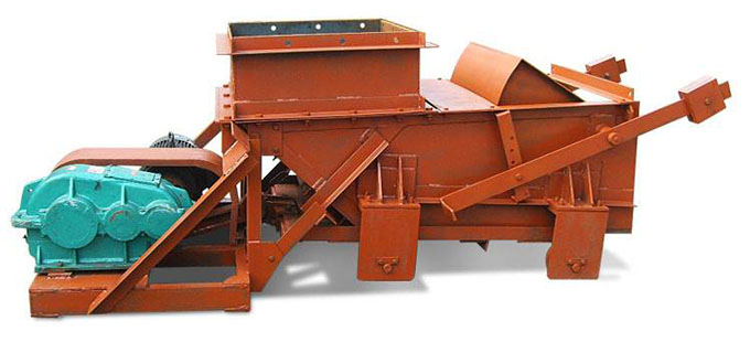 K型往復(fù)式給煤機是由機架、底板(給料槽)傳動平臺、漏斗閘門、托輥等組成,機利用曲柄連桿機構(gòu)拖動下傾5°的底板在輥上做直線往復(fù)運動,于煤或其他磨琢性小、粘性小的松散粒狀物料的給料,從而將儲倉或料坑里的煤或其它磨琢性小,粘性不大的松散粒狀,粉狀物料從給料設(shè)備中均勻地卸到運輸設(shè)備或其他篩選設(shè)備中。在生產(chǎn)線中多用于和皮帶輸送機等輸送設(shè)備相互配套,共同完成物流的運輸。也可將散料經(jīng)料倉或直接進(jìn)行均勻的轉(zhuǎn)載到皮帶輸送機或其它篩選設(shè)備、貯存裝置等配合使用。實現(xiàn)對礦石、砂煤、糧食等散裝物料的均勻給料。K型往復(fù)式給煤機工作原理: