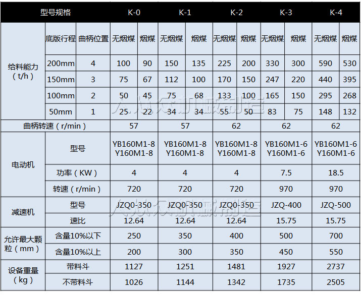 K型往復(fù)式給煤機技術(shù)參數(shù):                  K型往復(fù)式給煤機技術(shù)參數(shù):    咨詢熱線:18638319063(微信同號)