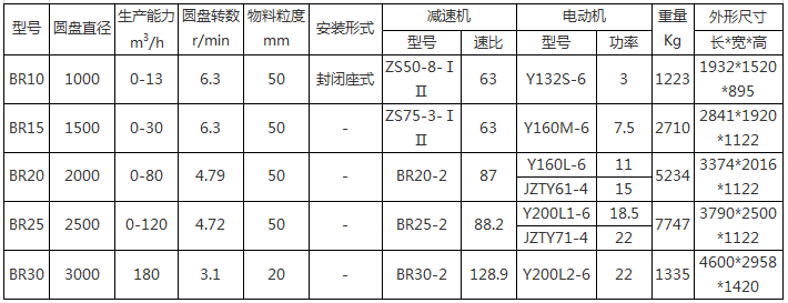 BR圓盤(pán)給料機(jī)型號(hào)技術(shù)參數(shù):